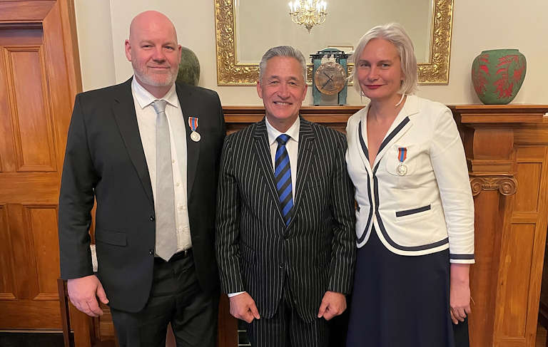 Grace Smit, Hautū Strategy, Finance & Performance, and Geoff Short, Hautū, Policy Partnerships, were both presented with Te Tohu Ratonga Tūmatanui o Aotearoa - The New Zealand Public Service Medal.