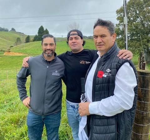 Image: Aubrey Te Kanawa and Manu Barrett of Solar Sense and Jim Wilson from Te Puni Kōkiri at Te Anga Waitomo.