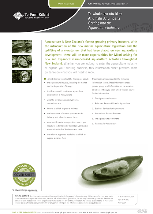Ahumoana Ahutāngata, Aquaculture Development in New Zealand: Scientific and Technical Information to Inform Māori